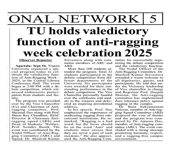- Debate competition & Valedictory function of Anti-ragging week celebration -2025